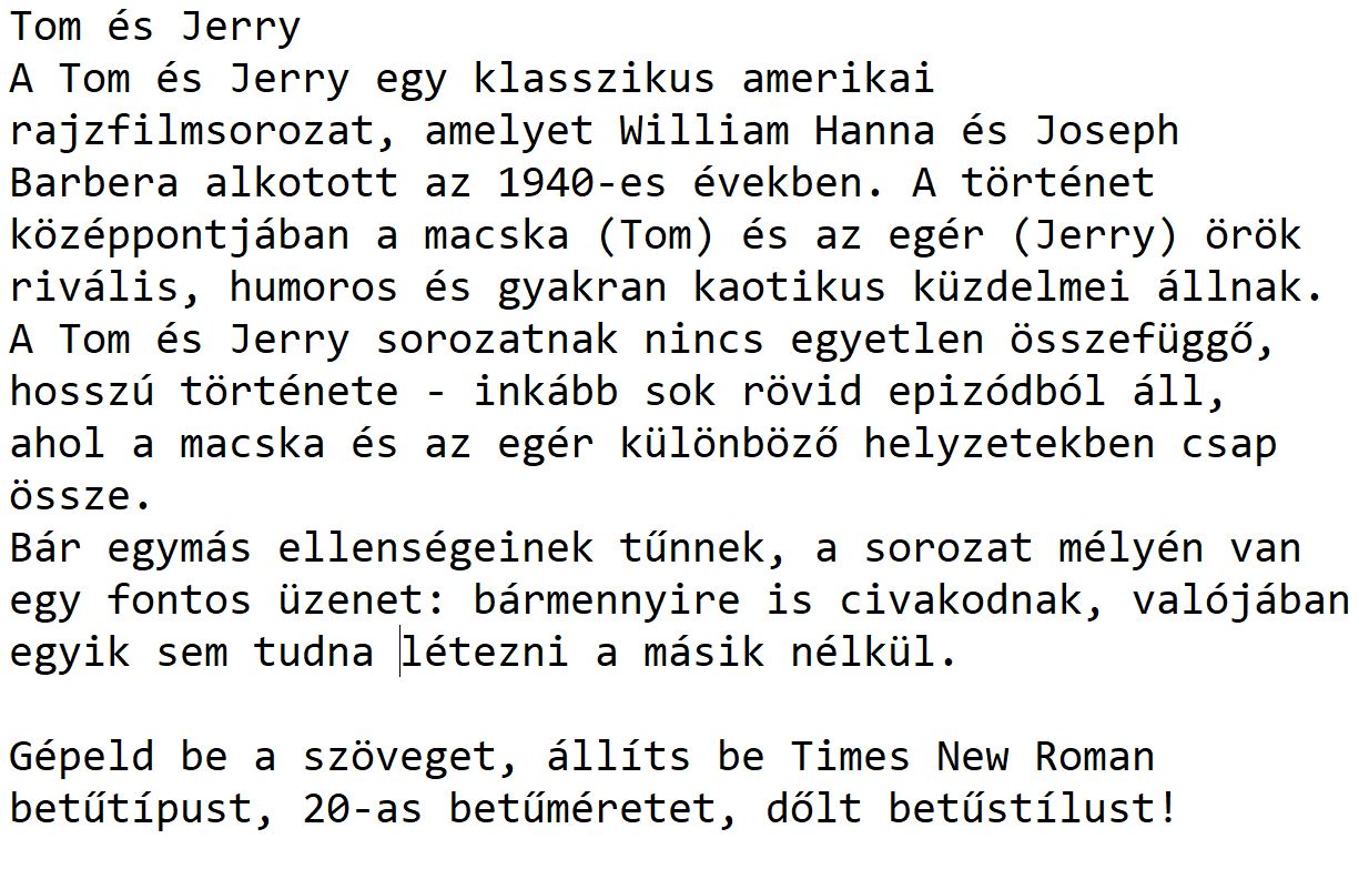 Karakterformázás 1 ny, 2 ny, 3 ny, 4 ny,