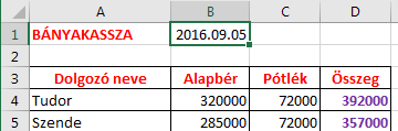 táblázatunkba a B2-es cellába az aktuális dátumot!