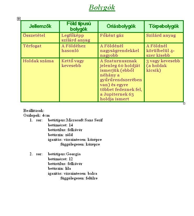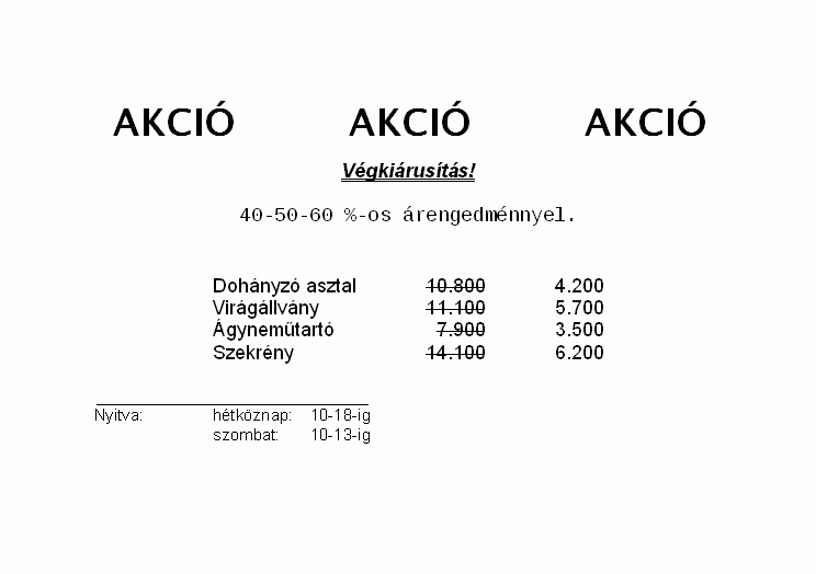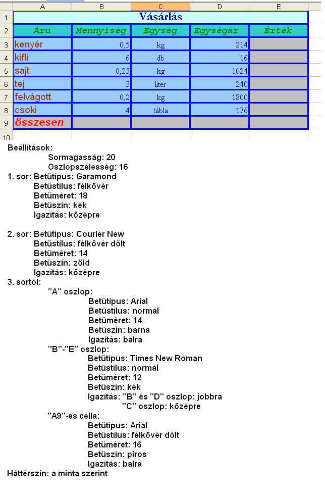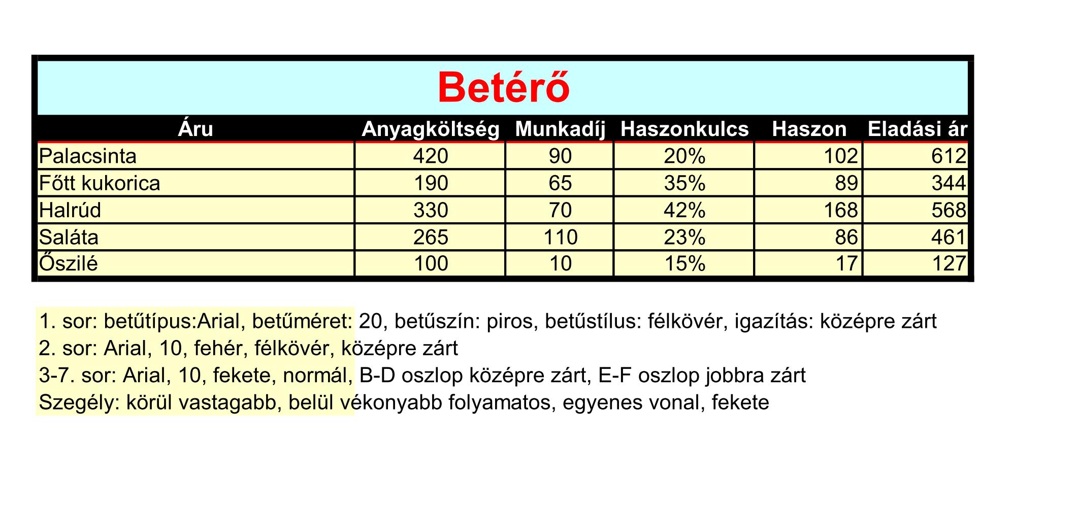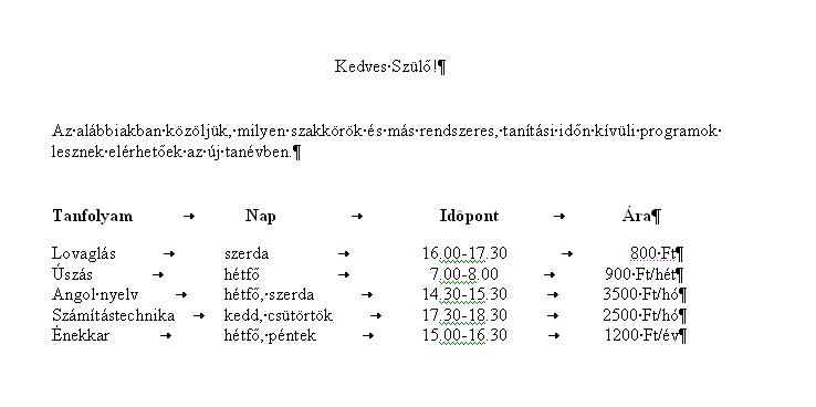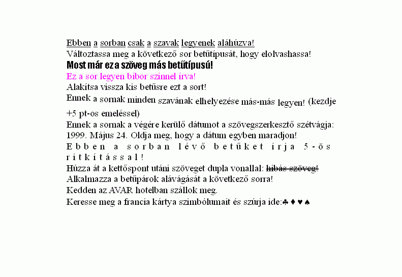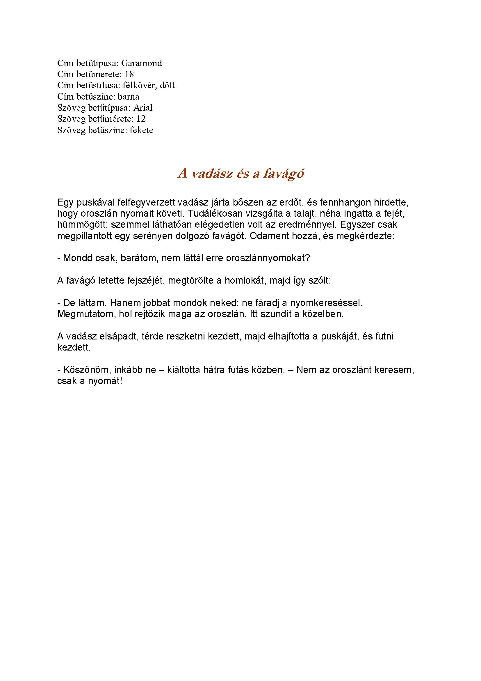 Karakterformázás 1 ny, 2 ny, 3 ny, 4 ny,