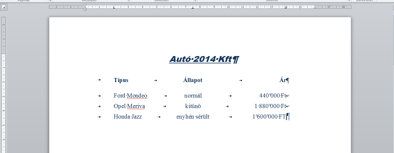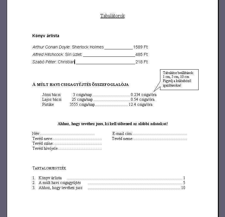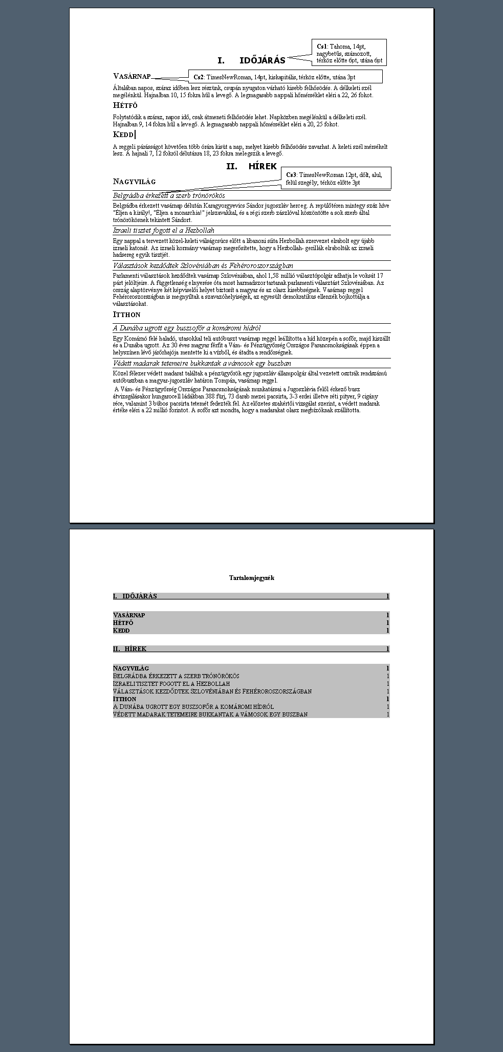 Bekezdésformázás 1 és nyers, 2 és nyers, 3 és nyers, 4 és nyers, 5 és nyers,
